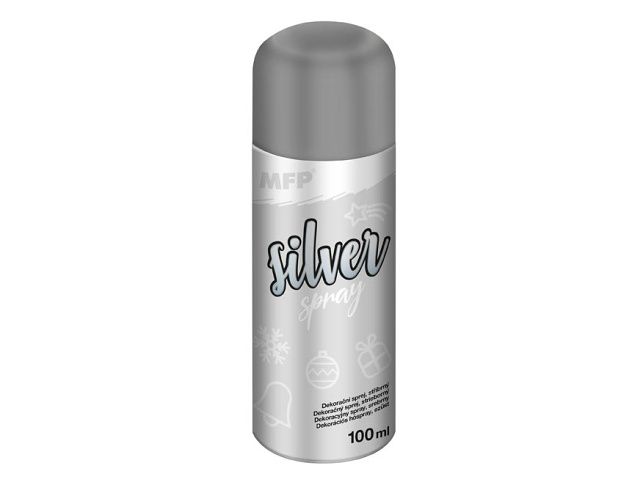 Sprej stříbrný dekorační - díky stříbrnému nádechu vytvoří příjemnou vánoční atmosféru, je vhodný k dekoraci květin, stromků, větviček papírových a dárkových dekorací apod. NÁVOD K POUŽITÍ: 1. Sprej musí mít pokojovou teplotu. Před použitím důkladně protřepejte a nanášejte ze vzdálenosti cca 30 cm. 2. Zasychá cca 20 - 30 min. 3. Pro vyčištění (profouknutí) trysky otočte sprej dnem vzhůru a stiskněte. Uvedená cena je za 1 ks.