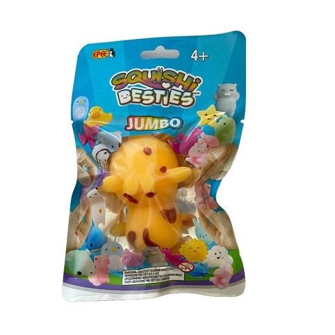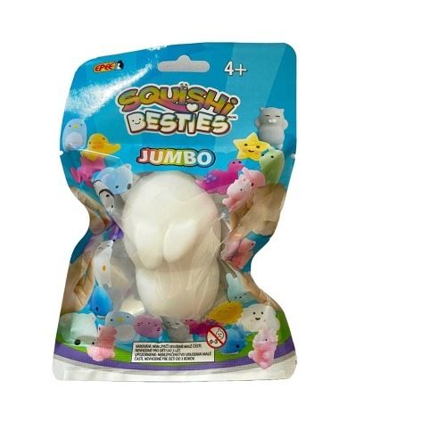 SQUISHI BESTIES – JUMBO. V balení najdete 1 ks mačkací hračky, tato série nabízí celkem 8 různých tvarů. Doporučený věk 4 roky.