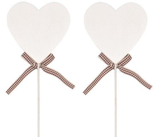 Srdce dřevěné bílé 7 cm + špejle, 2 ks zápich