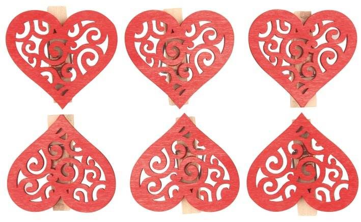 Srdce dřevěné červené s kolíčkem 4 cm, 6 ks