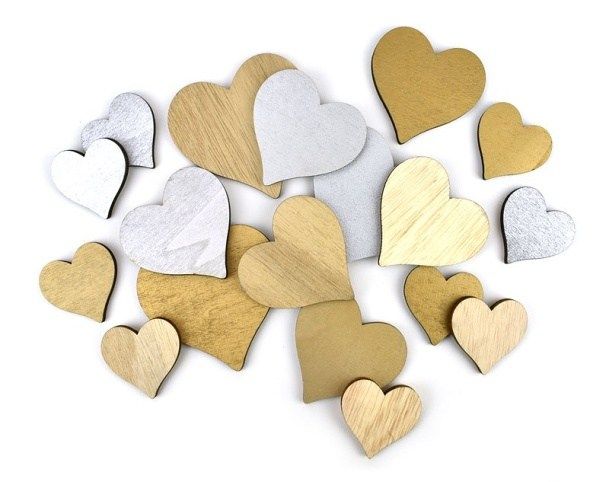 Srdce dřevěné, mix velikostí, 18 ks