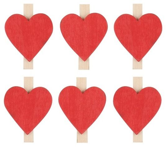 Srdce dřevěné na kolíčku 3 cm 6 ks červené