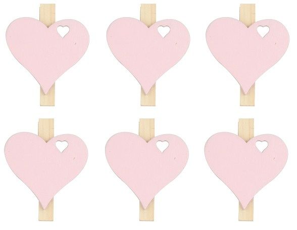 Srdce dřevěné na kolíčku 3 cm 6 ks růžové