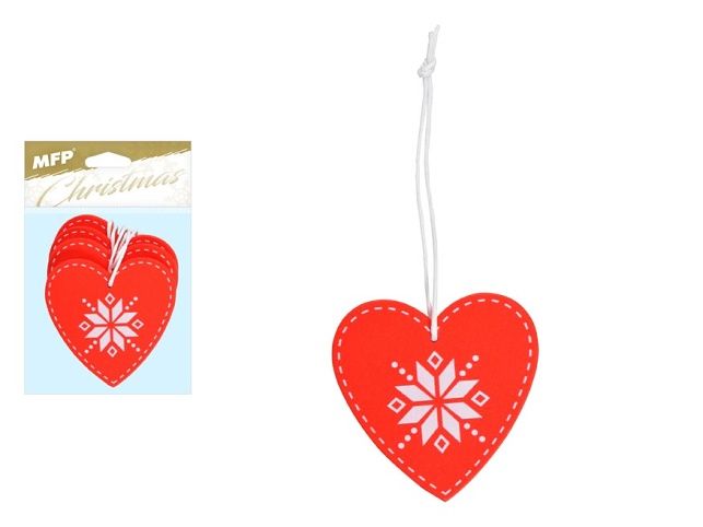Vánoční ozdoba ve tvaru srdce v červené barvě. Materiál: dřevo