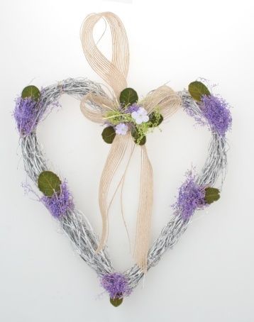Srdce proutěné s levandulí 21 cm, k zavěšení