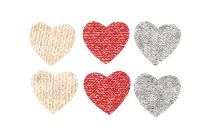 Srdce s lepíkem pletený vzor 3 cm 3 barvy,6 ks v sáčku