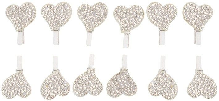 Srdce se stříbrnými kamínky na kolíčku 2 cm 12 ks