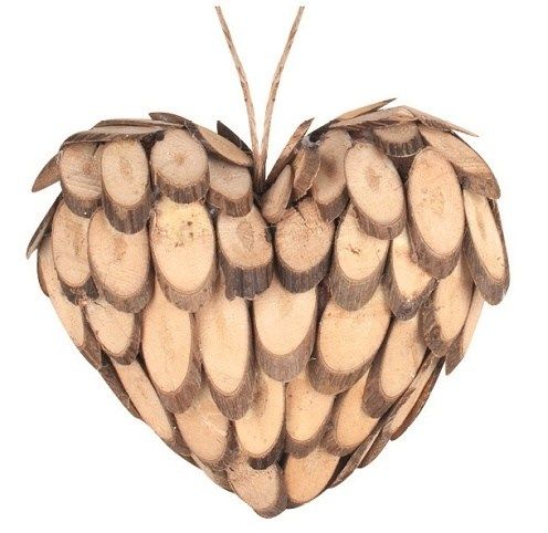 Srdce z dřevěných plátků na zavěšení 10 x 9 x 5 cm