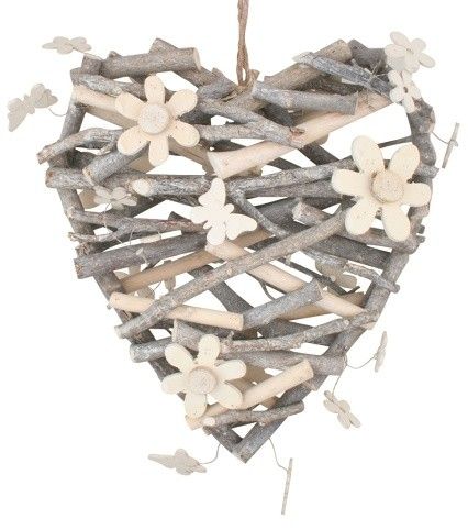 Srdce z větviček s kytičkami a motýlky 24 cm