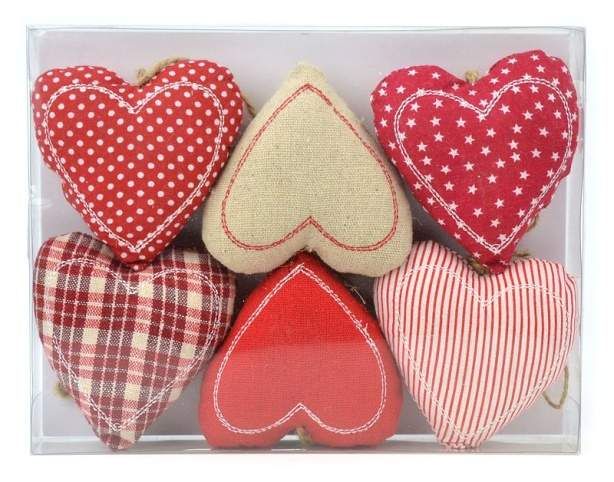 Srdce závěs textil, 9 cm, 6 ks