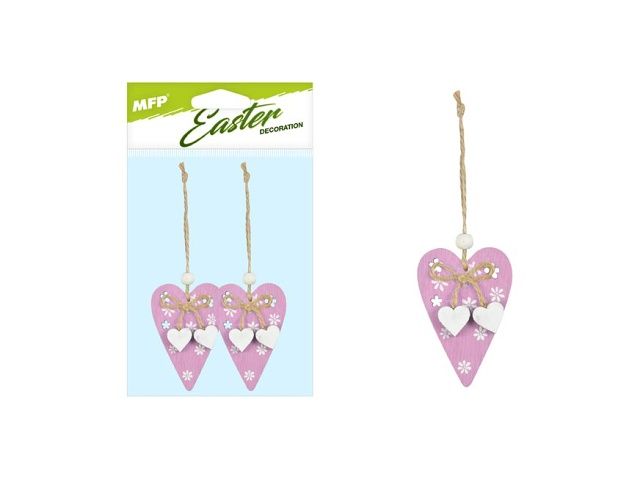 Srdíčka závěs 2ks/8cm růžová dřevo