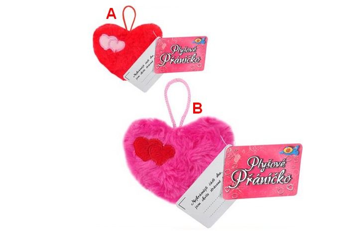 Srdíčko plyšové 8x6cm s přáníčkem 2 druhy