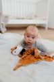 Součástí je také měkké kousátko vhodné při prořezávání zoubků a jemné chrastítko, které podporuje zvědavost a rozvíjí sluchové vnímání.
