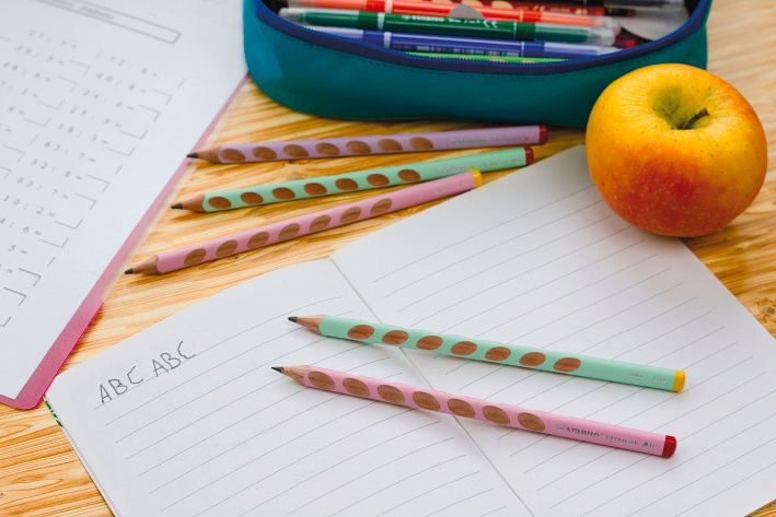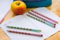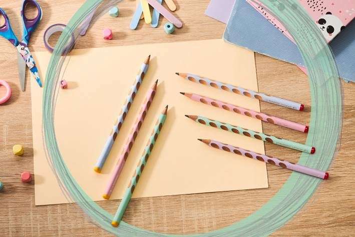 Ergonomická trojhranná grafitová tužka zvlášť pro leváky a praváky / Neklouzavé úchopové plošky pro uvolněné držení / Tvrdost tuhy HB s průměrem 3,15 mm / ve 4 pastelových barvách pro praváky a 3 pastelových barvách pro leváky / Tento produkt byl vyroben ze dřeva certifikovaného PEFC® (PEFC/04-31-1728)