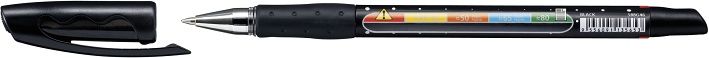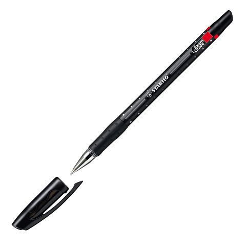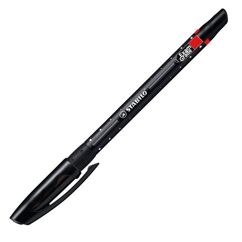 STABILO Exam Grade. Kuličkové pero pro žáky a studenty na zkouškách. Vhledové okénko s měřítkem hladiny inkoustu ukazuje, na kolik stránek je zásoba inkoustu dostatečná. Pogumovaná úchopopová zóna pro uvolněné držení. Snadno tekoucí inkoust pro rychlé a čisté psaní. Šířka stopy 0,45 mm (L). Uzávěr lze nasadit na konec pera.