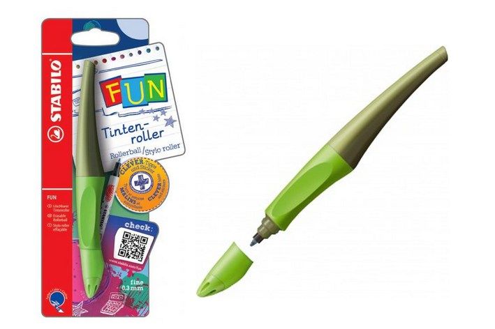Zmizíkovatelný modrý inkoust s náplní 0,5 mm je vhodný pro školáky. STABILO FUN - nový hrot zaručuje rychlejší a méně chaotickou výměnu náplní s barevným inkoustem.