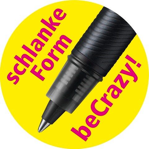 Módní STABILO beCrazy! roller v tenkém provedení je k dispozici v několika barevných verzích. Neklouzavá úchopová zóna umožňuje pohodlné držení po celou dobu psaní. Pero s hrotem M o tloušťce 0,5 mm lze znovu naplnit standardními bombičkami a je ideální pro příležitostné i každodenní písaře.