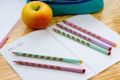 Ergonomická trojhranná grafitová tužka zvlášť pro leváky a praváky / Neklouzavé úchopové plošky pro uvolněné držení / Tvrdost tuhy HB s průměrem 3,15 mm / ve 4 pastelových barvách pro praváky a 3 pastelových barvách pro leváky / Tento produkt byl vyroben ze dřeva certifikovaného PEFC® (PEFC/04-31-1728)