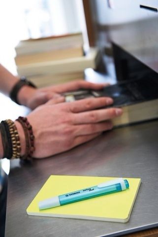 STABILO swing cool - zvýrazňovač pro školáky a studenty zaměřené na trendy a módu a všechny, kteří hodně cestují. Technologie STABILO Anti-Dry-Out poskytuje 4 hodiny ochrany proti vysychání a umožňuje soustředěnou práci. Díky praktickému klipsu a úzkému tvaru šetří místo v penálu a je dokonalým společníkem na cestách.