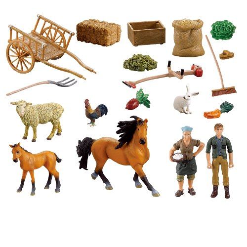 Oplocená stáj pro koně a zvířata s elegantním přístřeškem. Sada obsahuje dvě figurky farmářů, jednoho koně, jedno hříbě, jednu ovci, jednoho kohouta a jednoho králíka. Součástí je rovněž spousta příslušenství, které je nezbytnou součásti každého správného farmáře. Tato hračka je součástí kolekce Moje malá farma.