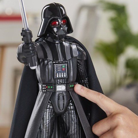 Tahle zbrusu nová elektronická figurka je veliká 30 cm a přichází právě včas, aby si mohla střihnout odvetu s Obi-Wanem Kenobim. Těšit se můžete na charakteristické hlášky a zvukové efekty. Prostor pro kreativitu nabízí tři různé režimy – stisknutím tlačítka na opasku aktivujete klasické hlášky a červené pulzování očí, druhým tlačítkem zažehnete světelný meč, abyste mohli svést vlastní imaginární bitvu doprovázenou zvukovými efekty, a třetí tlačítko na hrudi aktivuje duální režim hry. A samozřejmě nesmí chybět ani působivá kápě z jemného materiálu!