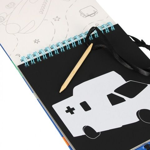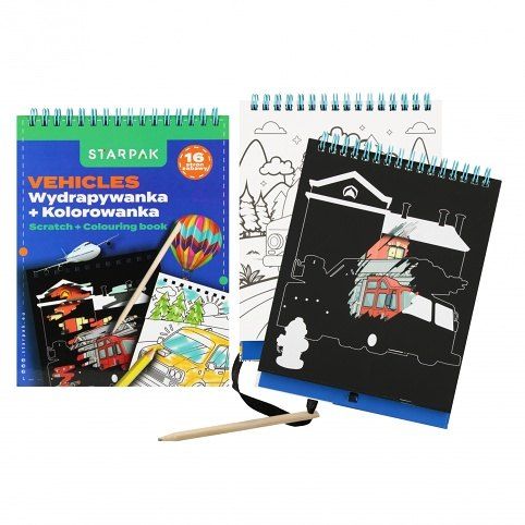 Kreativní sada Vehicles z kolekce STARPAK ve formě šablon. Sada se skládá z 16 šablon na vyškrabávání, 17 omalovánek a 1 vyškrabávací tyčinky.