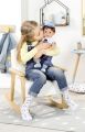 a je pořád v pohybu. Má nožky s ohebnými koleny a nosí moderní tenisky,
