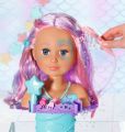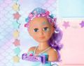 Vana se změní na mořský kadeřnický salón.Česací hlava s designem mořské víly je kadeřnickým salónem ve vaně. Stačí ji připevnit k vaně pomocí přísavek, pak napustit vodu a kadeřnickému talentu již nic nestojí v cestě.Barevné vlasy s barevnými pramínky jsou velmi kvalitní a lze je upravovat do stále nových účesů. Vlasy můžeš ozdobit šesti sponkami a hřebínkem ve tvaru čelenky. Ve spodní části hlavy se nachází odkládací plocha na všechny vlasové doplňky a také úchyty na kartáč ve tvaru hvězdice a na sprchovou hlavici. Po vyjmutí sprchové hlavice ve tvaru mušle z držáku se spustí čerpadlo a teče voda. Ale pouze tehdy, když se česací hlava skutečně nachází ve vodě.Hlava, která se snadno otáčí, je ozdobena malovanými detaily na obličeji. Kromě toho ji lze nalíčit pomocí Starší sestřička BABY born Make-upu pro česací hlavu, který lze zakoupit samostatně.•Mytí vlasů, česání a líčení.•Různé hry s panenkou podporují představivost a motorické dovednosti.•Pro radost z nápadité a dlouhotrvající hry. •Funguje na baterie (nejsou součástí).Starší sestřička BABY born Česací hlava Mořská víla s elektronickou sprchou. Součástí je kartáč, čelenka a 6 sponek do vlasů.