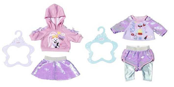 BABY born Starší sestřička Módní oblečení pro panenky ve velikosti 43 cm. Na výběr 2 druhy. Varianta 1: Mikina s kapucí a sukýnka. Varianta 2: triko s dlouhým rukávem a kraťasy. Součástí je ramínko.