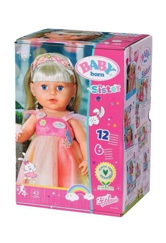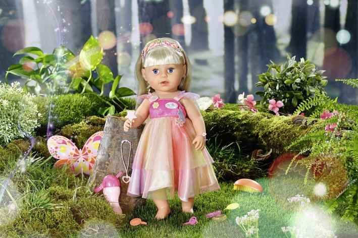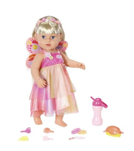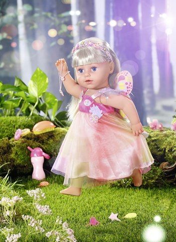 Funkční panenka Starší sestřička BABY born Soft Touch Jednorožčí víla velikosti 43 cm pro děti od 4 let. • Panenka má 6 životních funkcí, které fungují bez baterií. • Umí pít vodu. • Umí ronit panenkovské slzy. • Může se koupat. • Má kvalitní dlouhé vlásky, ze kterých lze tvořit nádherné účesy. • Je velmi pohyblivá, má flexibilní kolenní klouby pro skvělou pohyblivost. • Dokáže sama stát. • Součástí balení je 12 doplňků: dětská lahvička, kartáč na vlasy, 4 sponky do vlasů, 2 spirálové gumičky, 2 náramky, křidélka, čelenka do vlasů. • Panenka má na sobě třpytící se šaty jako pro vílu v duhových barvách a s květinovou aplikací. • Součástí jsou barevná vílí křidélka. • Čelenka do vlasů s nacvakávacími ozdobami. • Materiál „Soft Touch“ – tělíčko z měkkého a příjemného plastu. • Starší sestřičce BABY born sedí všechny oblečky pro BABY born velikosti 43 cm a může si hrát se všemi doplňky pro BABY born velikosti 43 cm. • K panence je možné samostatně dokoupit další produkty z rozsáhlé nabídky oblečení a doplňků. • Balení: obal bez plastů – barevná krabice s obrázky produktu.
