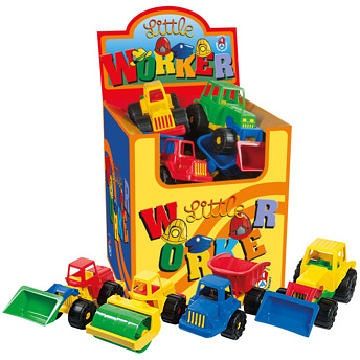 Plastové stavební autíčko v několika různých provedeních pro malé stavitele na pískoviště.