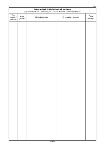 Seznam technické dokumentace stavby, jejich změn a doplňků (list 7a)