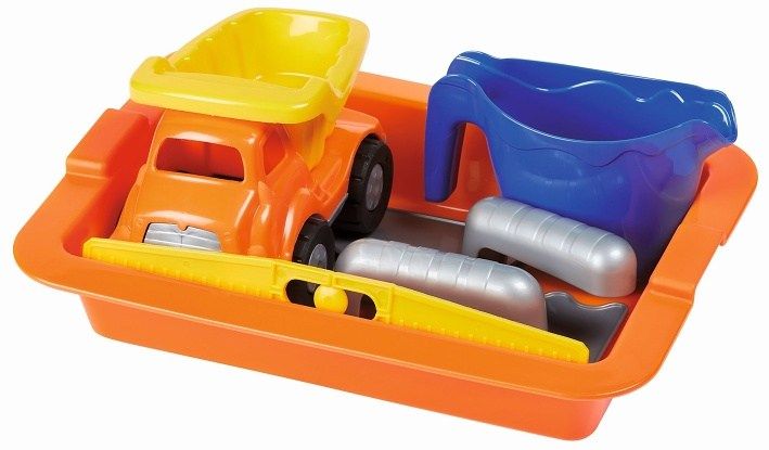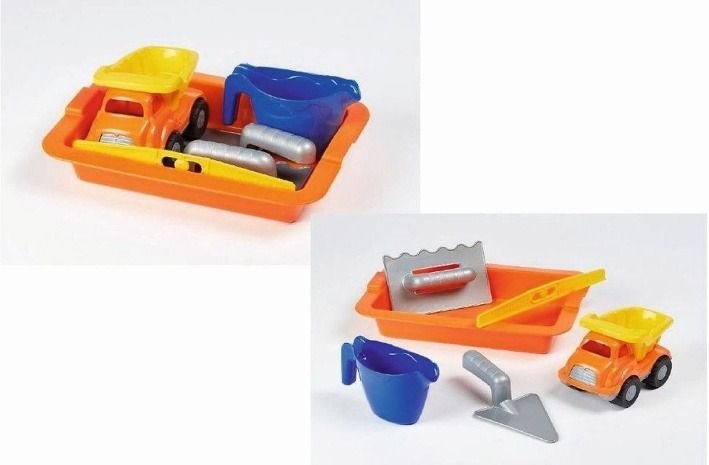 Stavební sada na písek, 6 ks. Pískoviště nebo pláž se během okamžiku promění ve velké staveniště. Hodiny zábavy jsou zde zaručeny, protože na stavbě je stále co dělat. Se zednickou lžící, pískovou stěrkou, vodováhou, pískovou miskou a konví mohou děti pod