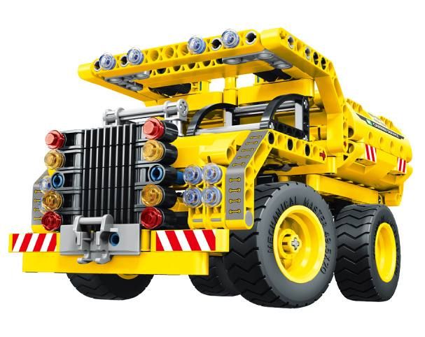Stavebnice Nákladní auto sklápěč a letadlo 2v1. Velikost nákladního auta 22x11x12cm, velikost letadla 37x25x13 cm. Lze sestavit z jedné sady nákladní auto nebo letadlo.