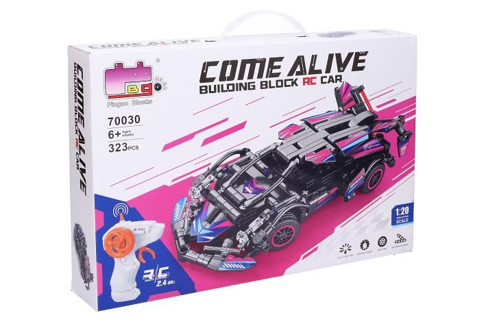 Stavebnice Auto růžové RC na dálkové ovládání. 323 dílků. Rozměry 18,7x8,8x6 cm. Pistolový ovladač. Frekvence 2. 4GHz. Bateriový pack 3. 7V 350mAh Li-ion do auta součástí, 2xAA do ovladače nejsou součástí. USB kabel součástí. Přepínač ON/OFF na spodní straně auta a na boční straně ovladače. Obrázkový návod bez textu a nálepky součástí.
