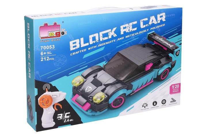 Stavebnice Auto tyrkysové RC na dálkové ovládání. 265 dílků. Rozměry 17,3x7,6x5 cm. Pistolový ovladač. Frekvence 2. 4GHz. Bateriový pack 3. 7V 350mAh Li-ion do auta součástí, 2xAA do ovladače nejsou součástí. USB kabel součástí. Přepínač ON/OFF na spodní straně auta a na boční straně ovladače. Obrázkový návod a nálepky součástí.