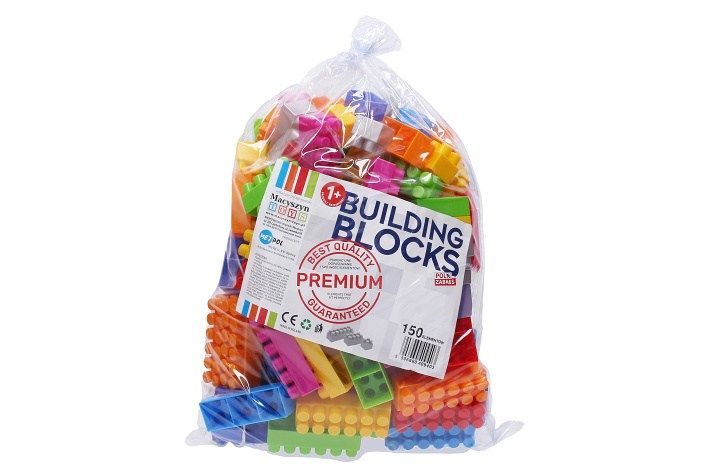 Stavebnice barevná. Balení obsahuje 150 dílků různých rozměrů.