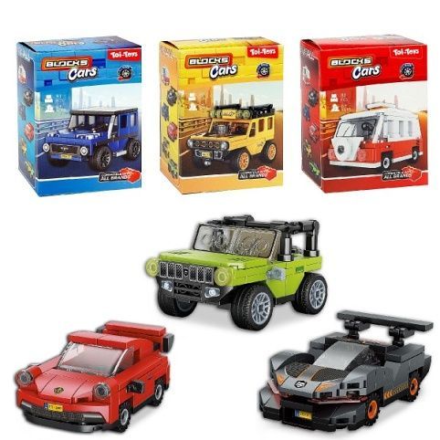 Stavebnice Blocks Cars - auta plast na zpětné natažení mix druhů v krabičce 10x13x6cm