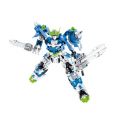 Stormblade Ronin je impozantní a impozantní mech, připomínající obrněného samurajského válečníka. Jeho elegantní design vyzařuje nádech síly a autority. Stormblade Ronin, oblečený v odstínech šedé a modré, s akcenty světle zelené, včetně svého hřebene, přitahuje pozornost na bojišti. Pilot Stormblade Ronin je generál Takeshi Arashi, nelítostný a mazaný vůdce s temným plánem. Takeshi má nesmírné dovednosti v bojových uměních i strategickém válčení, což z něj činí impozantního protivníka. Stormblade Ronin, vyzbrojený dvěma pilovými listy s dvojitým ostřím, je mistrem v boji na blízko a prořezává nepřátelskou obranu se smrtící přesností. K dalšímu rozšíření jeho schopností je stroj vybaven dvěma turbínami umístěnými na rameni. Tyto turbíny slouží dvojímu účelu, umožňují bleskurychlou manévrovatelnost na bojišti a rozpoutávají ničivé útoky založené na větru. Mistrovství Stormblade Ronin v manipulaci s větrem mu umožňuje vytvářet silné poryvy, narušovat nepřátelské formace a vytvářet chaos na bojišti. Generál Takeshi Arashi a Stormblade Ronin jsou poháněni touhou po dobývání a nadvládě. Jejich promyšlené údery a mistrovství jak v šermu, tak v technikách založených na větru z nich činí impozantní hrozbu, schopnou zvrátit průběh jakékoli bitvy, do které vstoupí. Sada stavebních bloků IM Master Mecha modrá 941ks