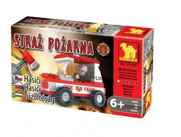 Stavebnice Dromader Hasiči Auto 21202 58ks v krabici 16,5x9,5x4,5cm