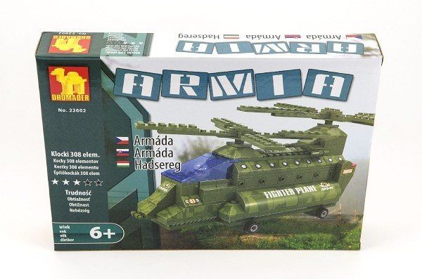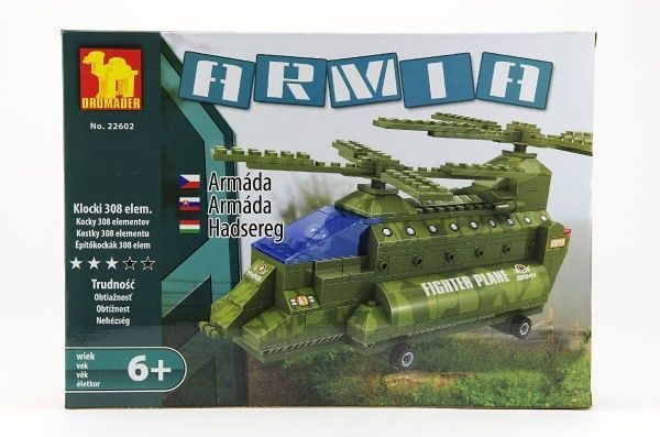 Stavebnice Dromader Vojáci Vrtulník 22602 308ks v krabici 35x25,5x5,5cm