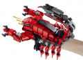 Uchycení na ruku: pomocí nastavitelného mechanismu. Ovládací mechanismus na spodní straně umožňuje pohyb drápy, klepety a ocasem. Design ve stylu kybernetického brnění – vhodný i jako nositelný model. Vystřelovací prvky a realistické klouby.