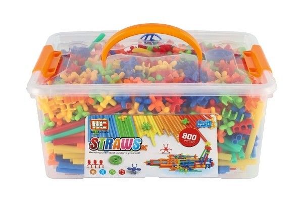 Stavebnice kreativní ze slámek/brček plast 800ks v plastové krabici 29x12x20cm