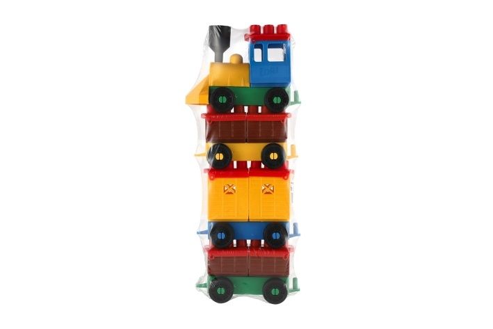 Stavebnice LORI 6 vlak + 3 vagónky plast v sáčku