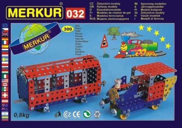 Stavebnice MERKUR 032 Železniční modely 10 modelů 300ks v krabici 36x27x3cm