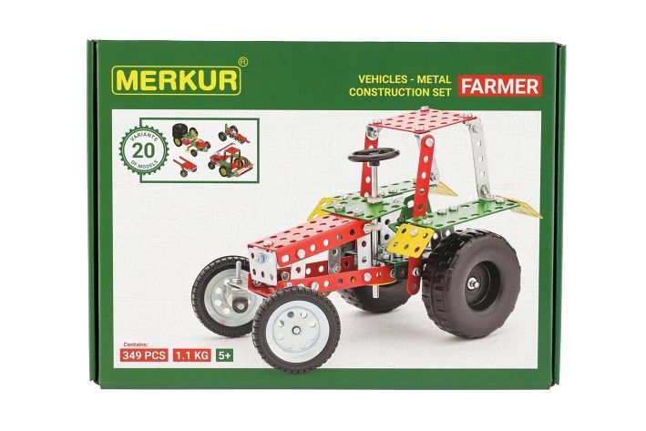 Ponořit se na chvíli do krás českého venkova, vzít na sebe povinnosti farmářů a pracovníků v zemědělství, to nabízí speciální stavebnice Merkur FARMER Set, s jejíž pomocí si postavíte traktory s vleky, sekačku na trávu či dokonce kombajn. K dispozici máte knížku, která obsahuje dvě desítky návodů na stavbu různých venkovských modelů, zapojit však můžete i vlastní fantazii a postavit si takové stroje, jaké vás napadnou.