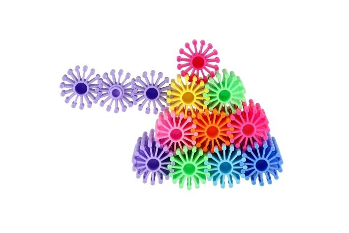 Barevná stavebnice z ozubených koleček rozvíjející jemnou motoriku, tvořivost, fantazii a kombinační myšlení. Můžeš sestavit cokoliv dle tvé fantazie, obrázkový návod může být inspirací.