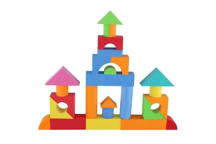 Kostky jsou vyrobeny z měkkého, gumového a netoxického materiálu. Pomocí kostek se u dětí rozvíjí jemná motorika rukou a díky barevnému provedení kostek i zrak. Kostky jsou baleny v plastové tašce. Sada obsahuje 81 ks.