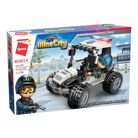 Zatočte s chaosem a podvodníky, vylepšená policejní auta odvedou vždy svou práci! Vysoce variabilní stavebnice Qman z pestrobarevných plastových kostiček lze kombinovat s podobnými stavebnicemi mnoha dalších významných výrobců. Vyrobeno z kvalitního, nezávadného a odolného, ABS plastu. Baleno v pestře potištěné papírové krabičce. Hlavní vlastnosti: ·98 dílků a 1 figurka ·kompatibilní se stavebnicemi dalších výrobců