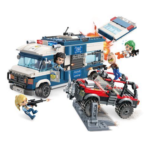 Zajměte uprchlé kriminálníky pomocí policejního zastavovacího pásu. V balení policejní dodávka, 2 figurky policistů, Jeep, 2 figurky kriminálníků. Vyrobeno z netoxického ABS plastu, v balení 608 dílků.